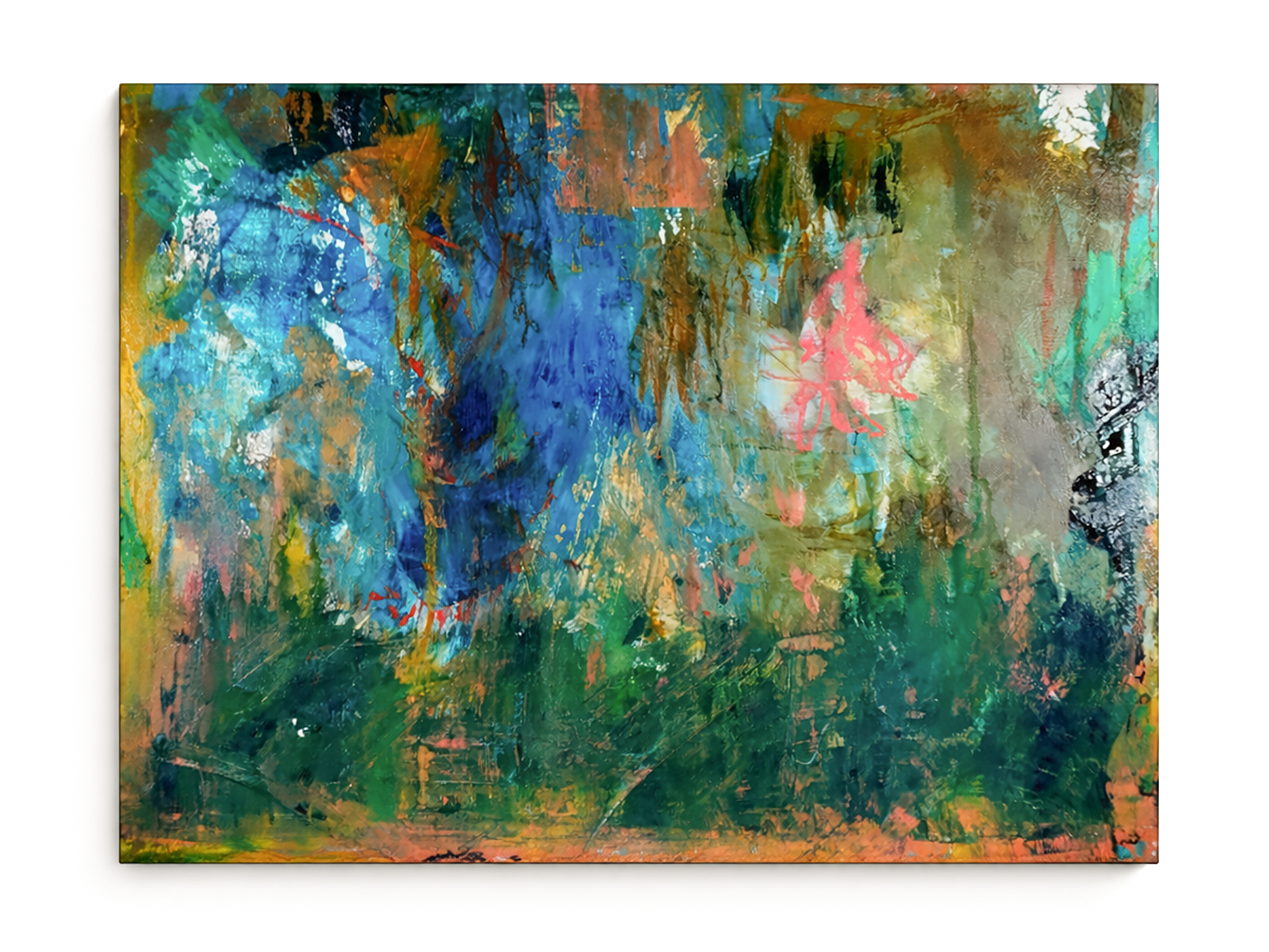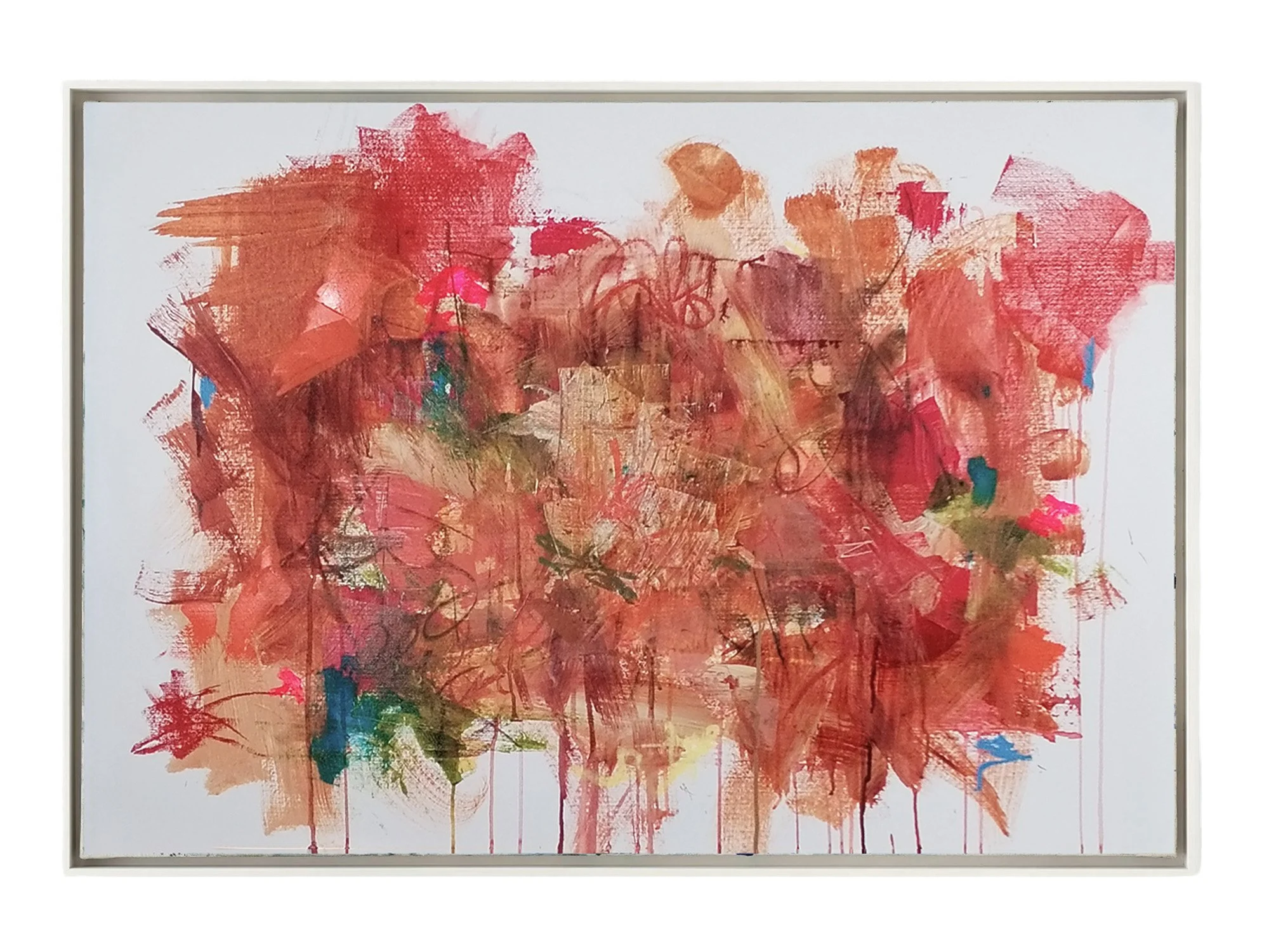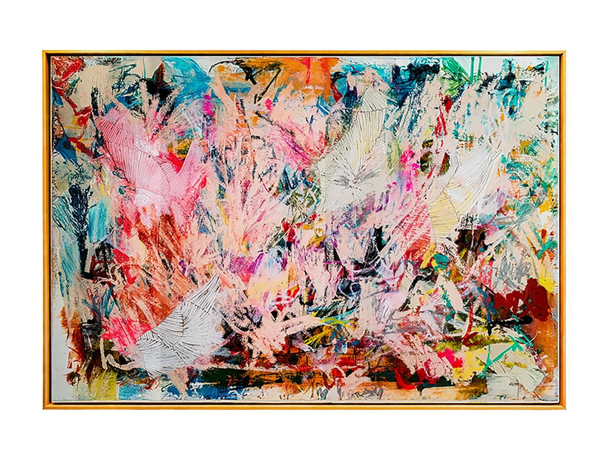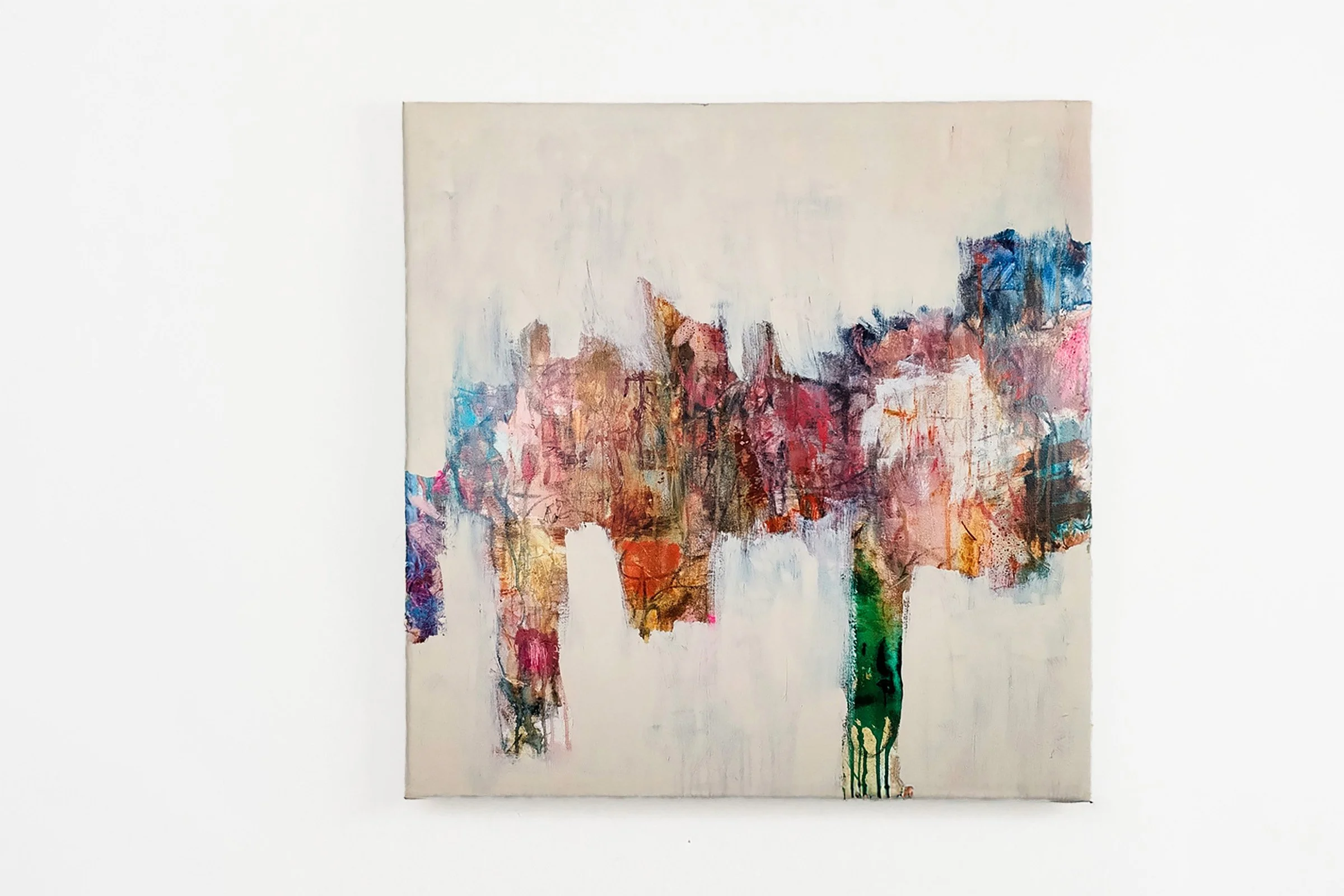 Acrylic, mixed media and collage on canvas, 80 × 80 cm