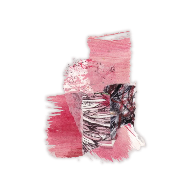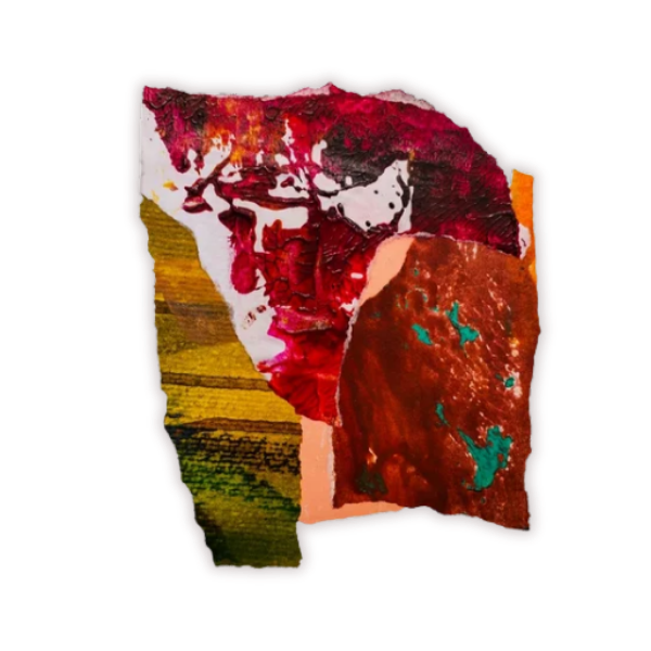 Acrylic, mixed media and collage on wood panel, 70 × 50 cm