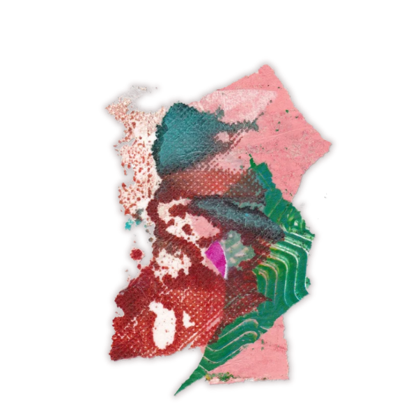 Oil paint, mixed media and collage on wood panel, 100 × 70 cm