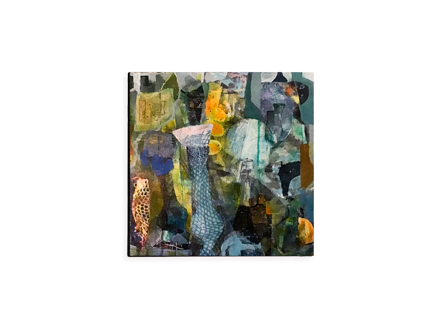 Vernal Vault | 2023 Acrylic, mixed media and collage on wood 40 x 40 cm|16 x 16 inch | In private collection (France)