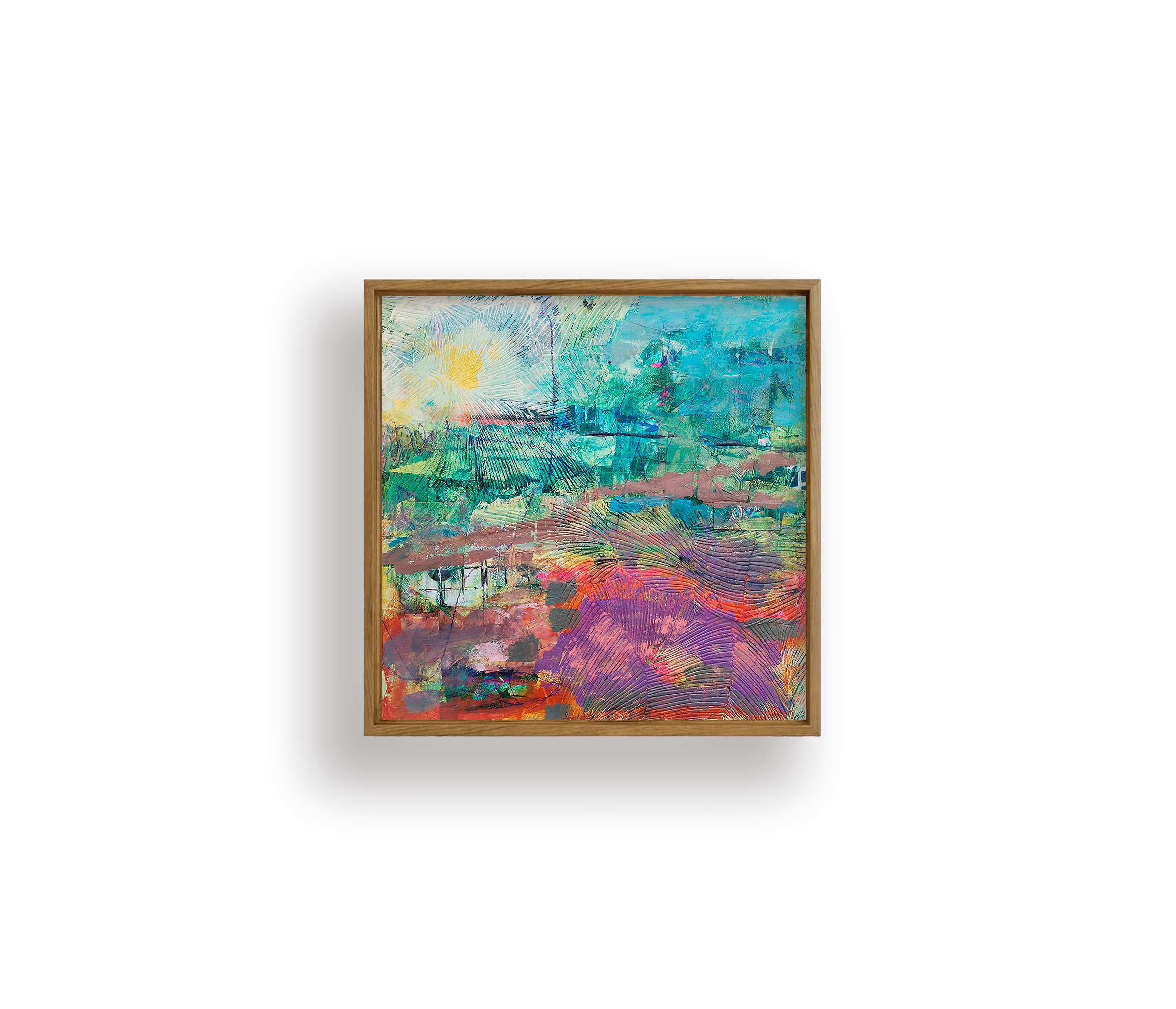 C'était une si belle journée | 2024 | Acrylic, mixed media and collage on wood | 45 x 45 cm | 17,72 x 17,72 inch
