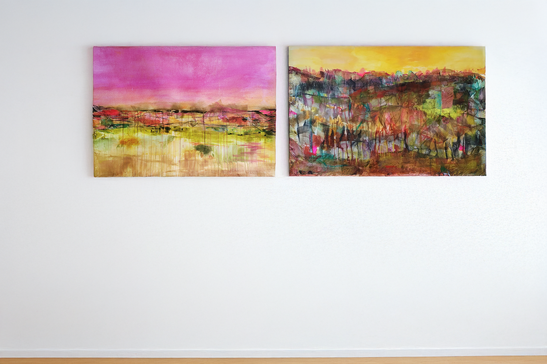 Dans les collines | Roamed and rambled | 2025 | Acrylic, mixed media and collage on wood | 95 x 65 cm | 25.5 x 37.5 inch